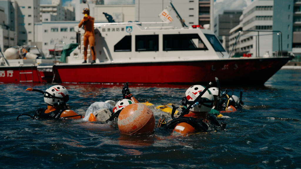 They are the unsung heroes who support the “everyday” we take for granted. Depicting perilous rescue operations in Tokyo Bay under zero-visibility conditions and the powerful water discharge from “Miyakodori”—one of Japan’s largest chemical firefighting vessels—this production captures the seldom-seen reality of these heroes on a grand scale.
